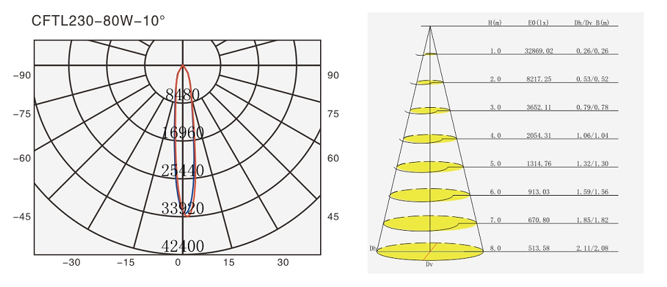 • Using CREE COB as light source which is high lumen, long life span and low light decay;
