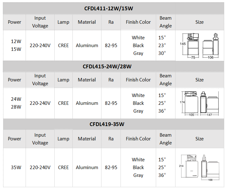 ■With the simple, exquisite, unique design, the track light has obtained Appearance Design Patent. Being made of international aluminum alloy, the heat sink plays better performance in stability to guarantee the service?life of whole lamp. By using imported .