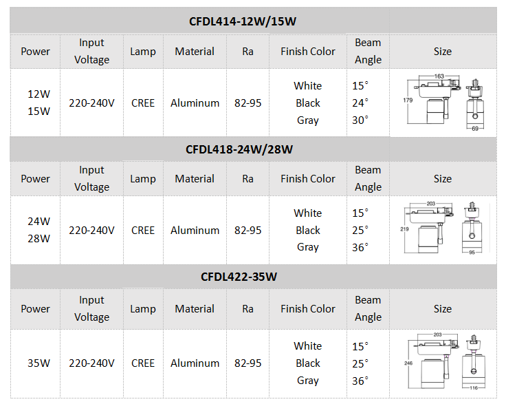 With the simple, exquisite, unique design, the track light has obtained Appearance Design Patent. Being made of international aluminum alloy, the heat sink plays better performance in stability to guarantee the service?life of whole lamp. By using imported .