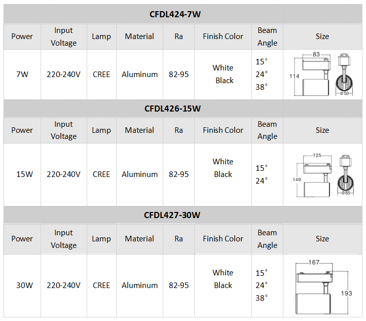 ■With the simple, exquisite, unique design, the track light has obtained Appearance Design Patent. Being made of international aluminum alloy, the heat sink plays better performance in stability to guarantee the service?life of whole lamp. By using imported .