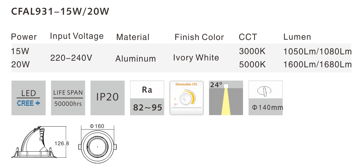 2.Superior dia-casting aluminum of housing,lvory white painted on surface,which looks completely elegant and exquisite.
