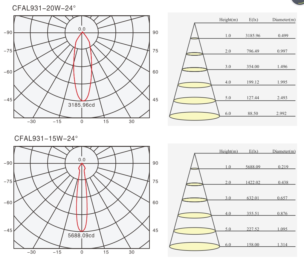 1.Use imported Cree COB as LED light source, long service life, small luminance decrease and good color consistency.