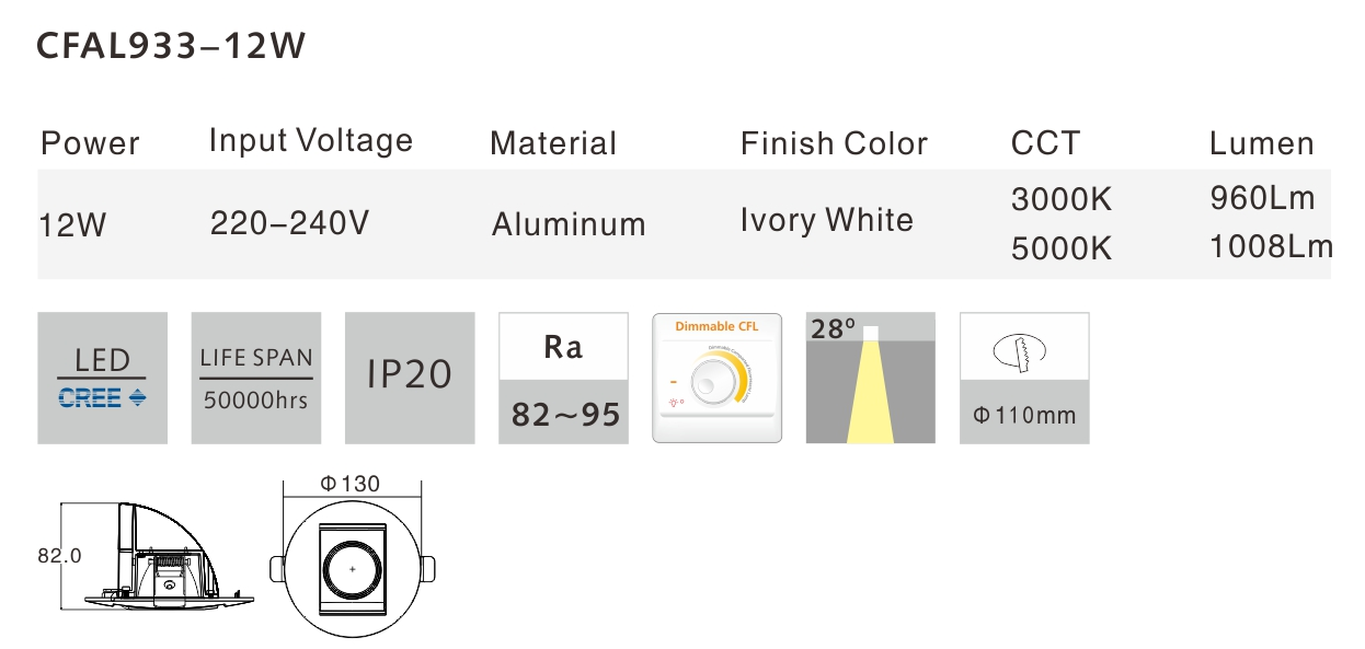 2.Superior dia-casting aluminum of housing,lvory white painted on surface,which looks completely elegant and exquisite.