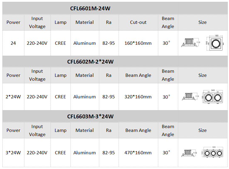 ■Use imported Cree COB as LED light source, long service life, small luminance decrease and good color consistency.